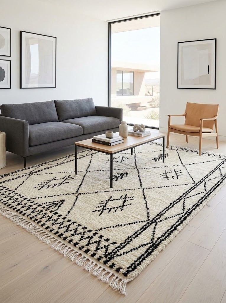 This Beni Ourain rug is more than a decorative piece — it is a living expression of Moroccan Berber heritage. Handwoven in the Atlas Mountains by skilled artisans, it reflects centuries of ancestral craftsmanship preserved through generations.