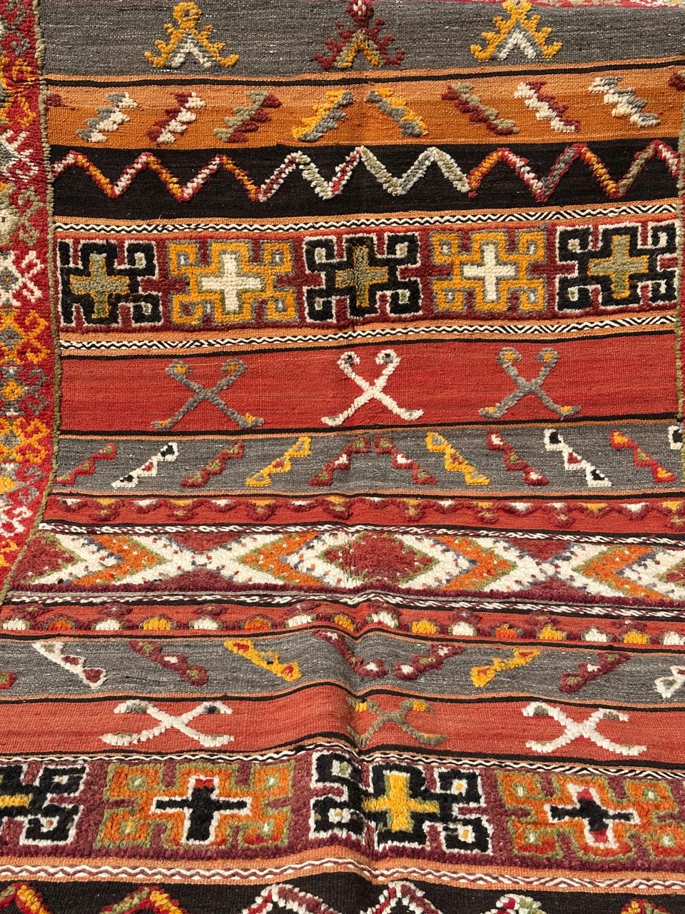 Authentic Glaoui rug, handwoven in Morocco using a remarkable combination of flat-weave, knotted, and embroidered textile techniques. Designed in square panel compositions, this double-sided Berber carpet reflects a unique artistic tradition where weaving, knotting, and tapestry come together in one exceptional piece.