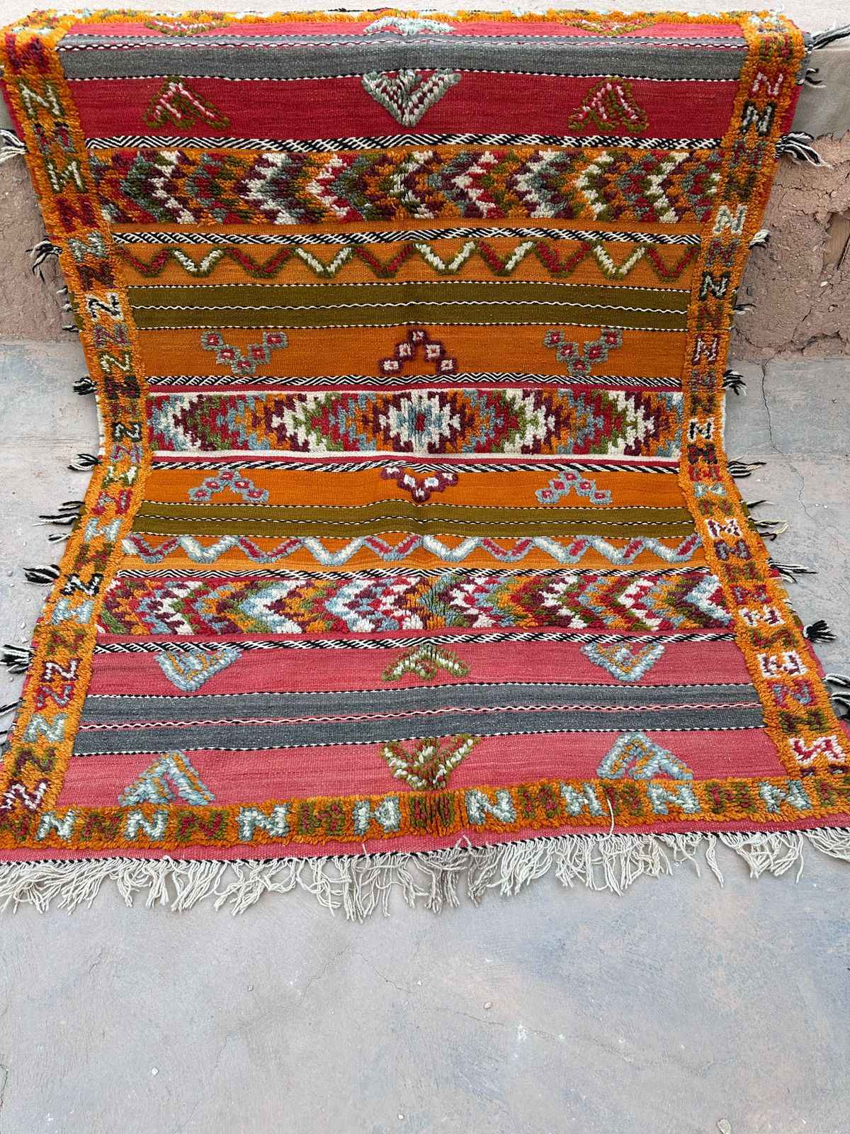 Rich in Amazigh symbols and ancestral motifs, this double-sided rug can be displayed from either side, making it both versatile and timeless — a true piece of Moroccan heritage that elevates any interior.