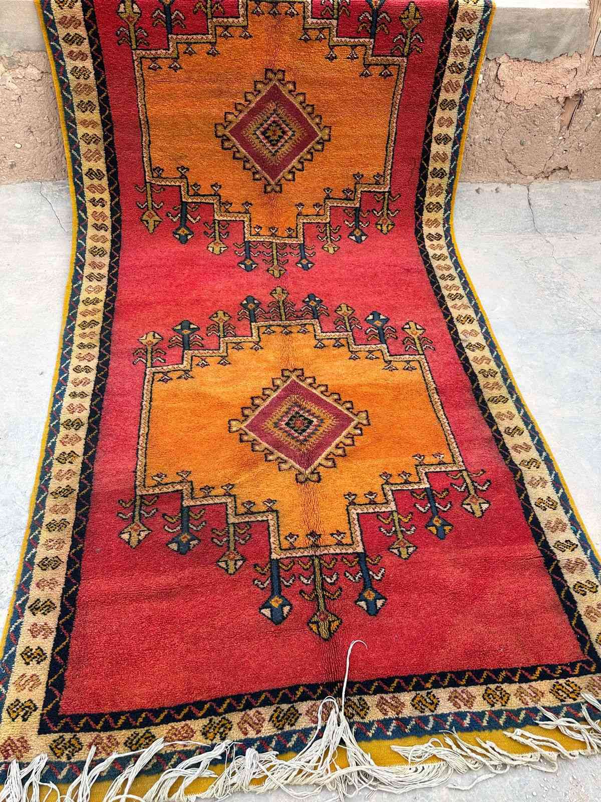 This Taznakht rug is a very rare piece of Berber art, handwoven from 100% natural sheep’s wool using ancestral techniques. An authentic vintage creation of exceptional quality, it is celebrated for its bold geometric patterns in vivid, natural colors.