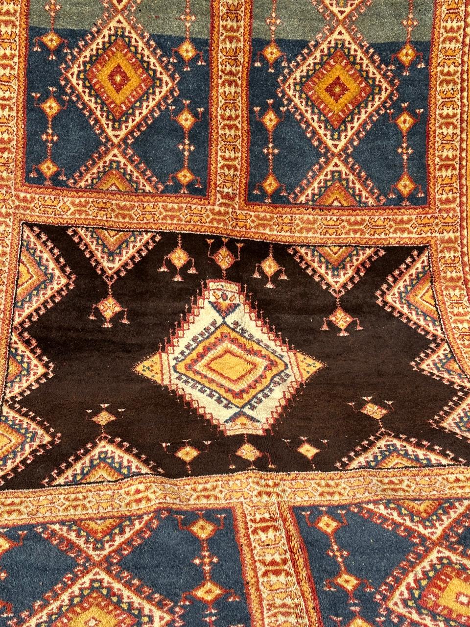 Recognizable for its bold geometric patterns and expressive composition, this rug features traditional motifs such as diamonds, squares, triangles, and stars, sometimes accompanied by symbols inspired by nature and Berber storytelling. These motifs are deeply rooted in Amazigh culture and transform the rug into more than a decorative object — it becomes a woven expression of memory, identity, and tradition.